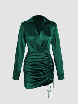 Solid Drawstring Satin Mini Dress(Set of 1)