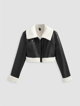 Faux Shearling Collar Crop Jacket (Set of 1)