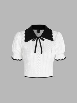 Polo Contrasting Trim Knit Short Sleeve Top