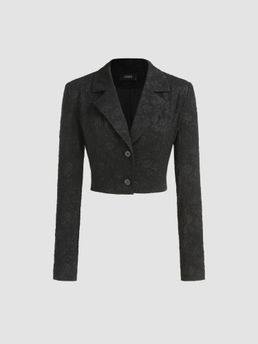 Solid Embroidered Collar Cropped Blazer