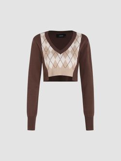 Patchy Argyle Knit Crop Top (Set of 2)